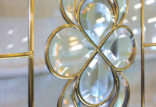 – хрупкий узор изготавливается из кусочков стекла, обернутых медной лентой и спаянных друг с другом.