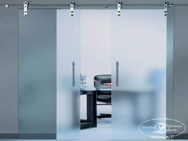 Открываются как внутрь, так и наружу, плавно возвращаются в исходное положение. Конструкцию можно установить в короб в архитектурном проеме или монтировать в составе стеклянной перегородки.